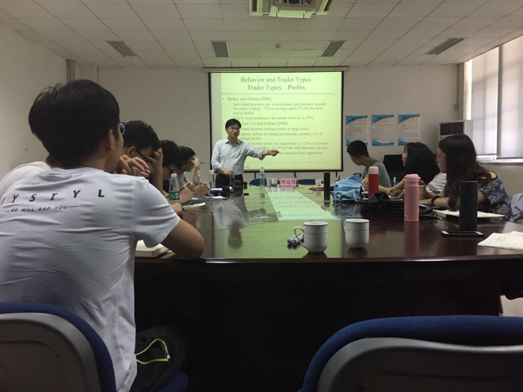 6月14日-16日,台湾政治大学商学院副院长暨财务管理系特聘教周冠男博士为成人网 2017级研究生进行为期三天的《数量经济分析》课程授课,这是学院为进一步发挥成人网 现有国际资源——‘海外名师’项目的潜力和影响,通过课程建设培养中青年教学骨干,增强课程的国际化和前沿化,研究生的国际化视野,增进国际化合作前景,提升年轻教师的科研合作开展的项目。授课方式主要采用讲授内容与方法、课下小组讨论做项目、课上小组讲解等形式进行,以英文材料、英文讲解、并配以中文解释的有效的双语授课方式进行。成人网 教师朱庆锋、王怡、宗高峰等教师及金融学院部分年轻教师、2017级研究生及2016级及2015级金融数学专业部分本科生参加学术报告。