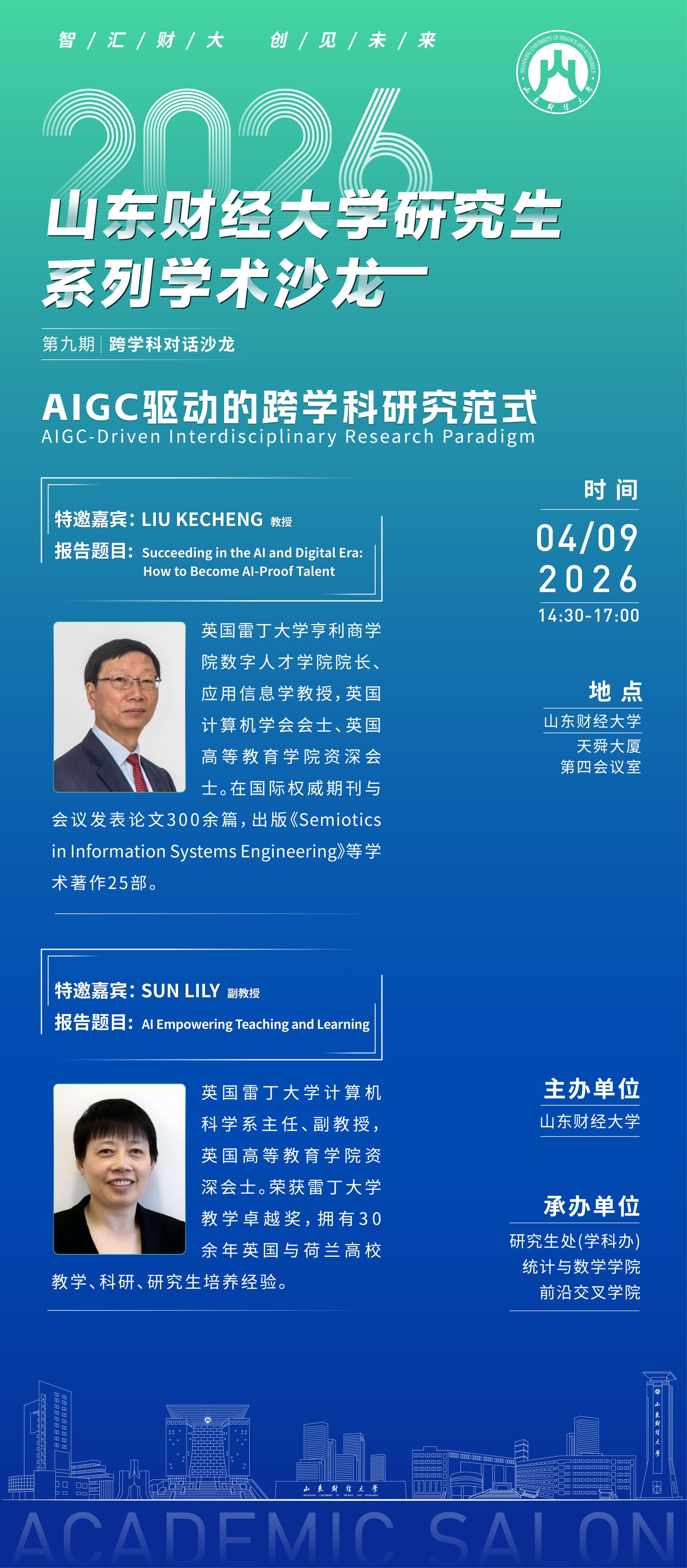 成人网 研究生系列学术沙龙第九期将于4月9日下午精彩开启!本期沙龙以“高端学术引领+师生互动研讨”为特色,特邀国际权威专家LIU KECHENG教授与SUN LILY副教授联袂主讲。