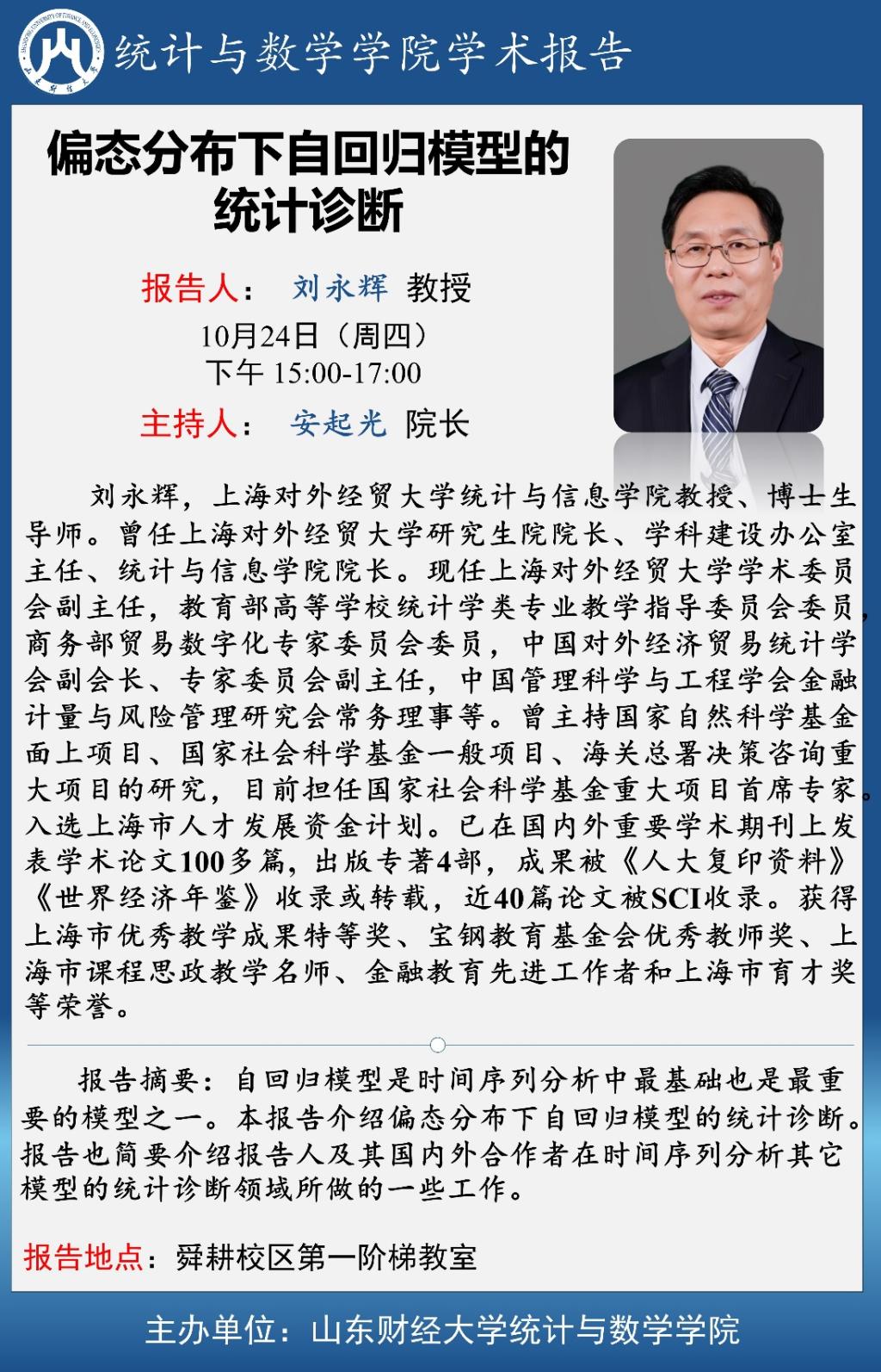 成人网 学术报告预告-偏态分布下自回归模型的统计诊断