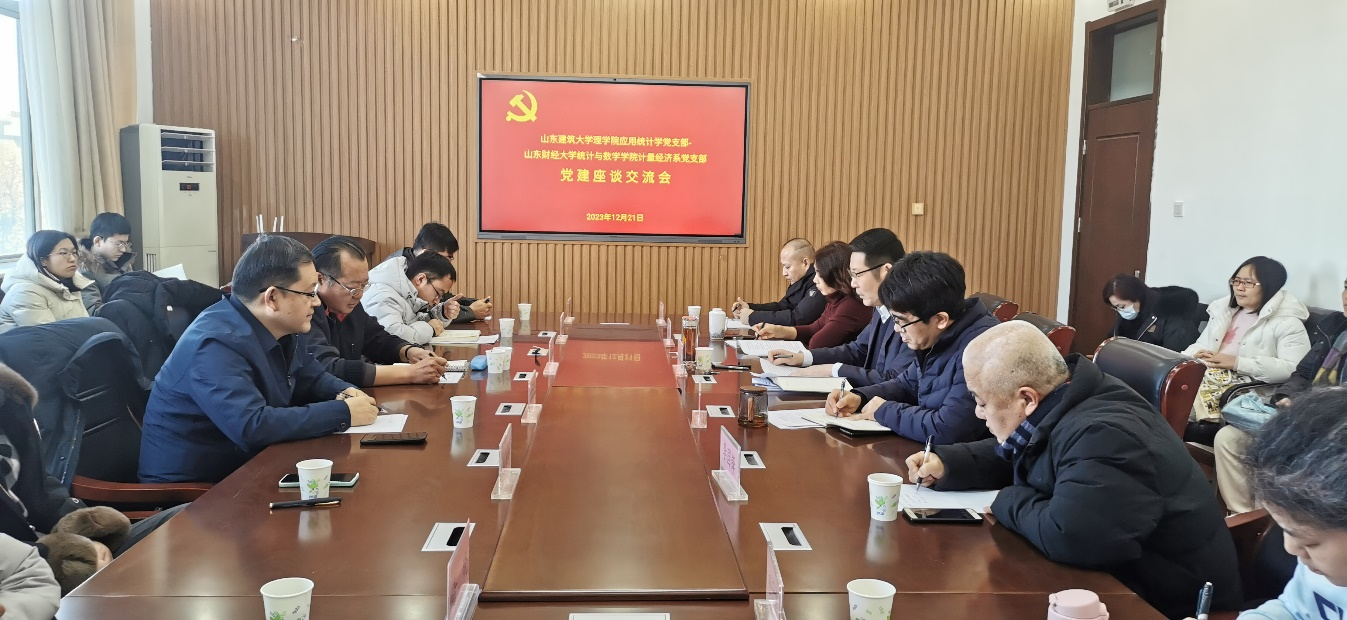 2023年12月21日下午,山东建筑大学理学院党委书记全锦带领应用统计学系党支部全体党员,在燕山校区1502会议室与成人网 计量经济系党支部进行了基层党建工作座谈交流。座谈会由计量经济系党支部书记李振波同志主持,成人网 党委书记李玉成参加了本次座谈会。