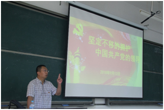 2018年9月12日上午,成人网 在弘毅楼B2108、B2109为2018级新生举办了以“坚定不移的拥护中国共产党的领导”为主题的的党建专题教育讲座,学院专职组织员张亚萌为新生上党课。2018级全体新生参与。