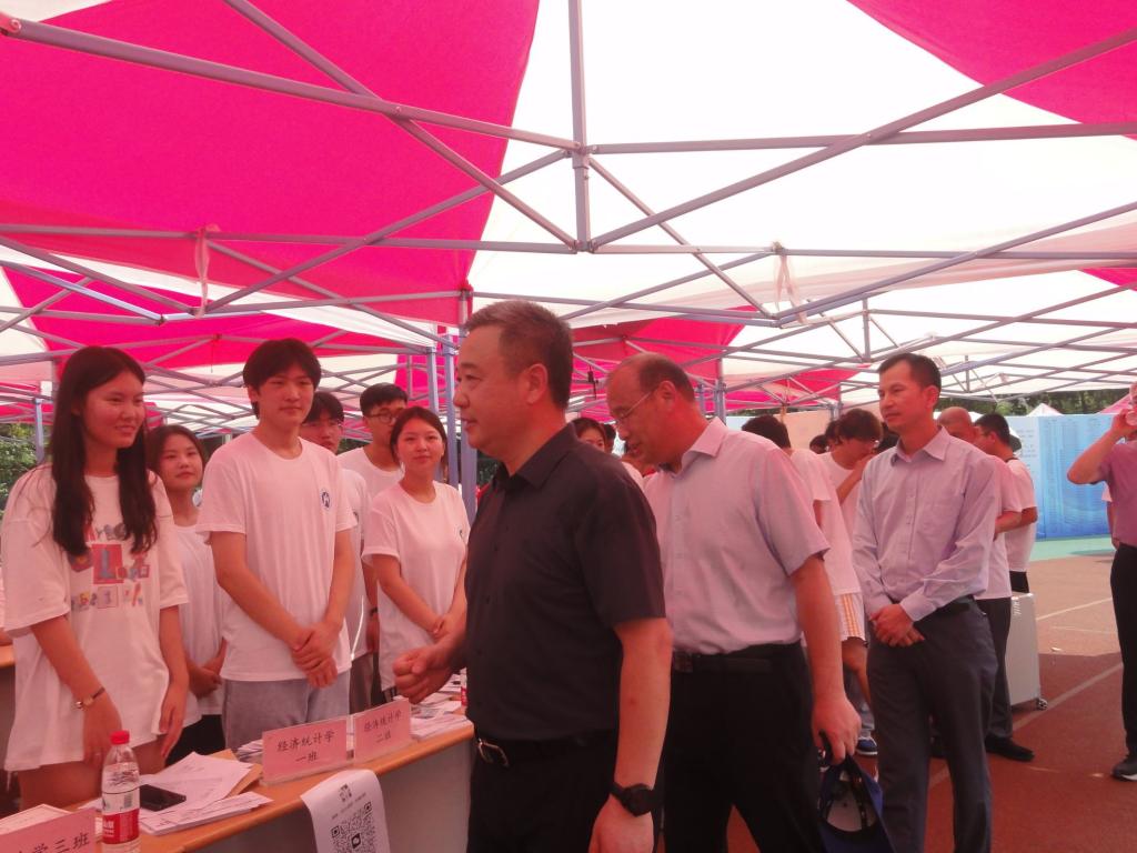 31日上午,校党委书记查玉喜和其他校领导在相关职能部门负责人的陪同下来到学院迎新现场看望全国各地新同学,亲切慰问迎新工作人员和志愿者,对成人网 在迎新工作中所做的精心准备给予充分肯定。在与新生及家长的交谈中,详细询问了他们对大学生活的期待与疑惑,并勉励新同学尽快适应大学生活,树立远大目标,努力学习、历练本领,为实现中国式现代化贡献力量。在宣传展板前,查玉喜等校领导与学院师生合影留念。