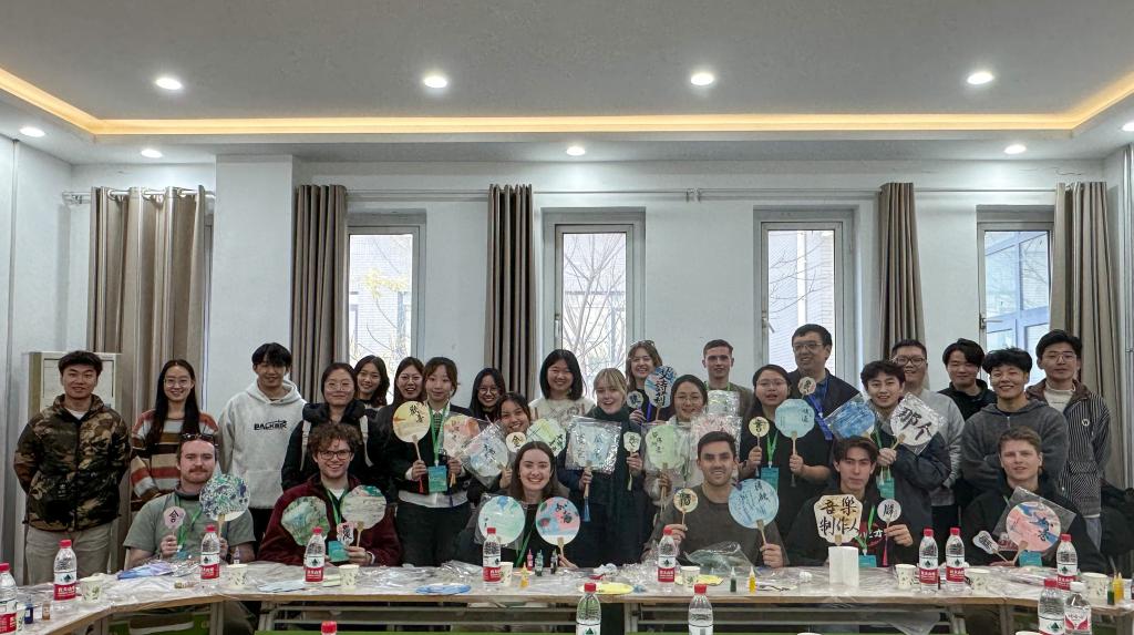 研学团首先参观了我校图书馆,了解图书馆数字化的硬件平台、资源平台和服务平台,参观智能书架、图书自助借还机、电子书借阅机、瀑布流、歌德阅读机等设施,并在朗读亭内进行体验。在图书馆老师的带领和讲解下领略《论语》《四库全书》等中华典籍历史文化和博大精深,充分感受中国传统文化的深厚底蕴。接着,研学团参观了成人网 学生宿舍,了解彼此日常生活细节,分享校园趣事。在志愿者的带领下研学团来到大学生文化活动中心,欣赏成人网 学子太极拳、八段锦等中国传统体育项目表演,并在志愿者的指导下亲身体验基本招式和经典动作,在舒缓悠扬的音乐和行云流水的动作中感受中华武术的独特魅力。成人网 志愿者为澳洲研学团精心准备了漆扇与书法体验活动,同学们融合传统漆扇工艺与个人创意合作完成了独具特色、意境悠远的作品,中外学生共同领略了中国传统文化的多彩魅力和历史传承。