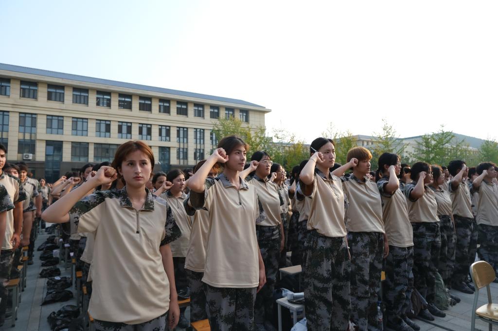 学院全体辅导员,教师代表,全体教官,2025级全体本科生、少数民族预科生参加典礼。