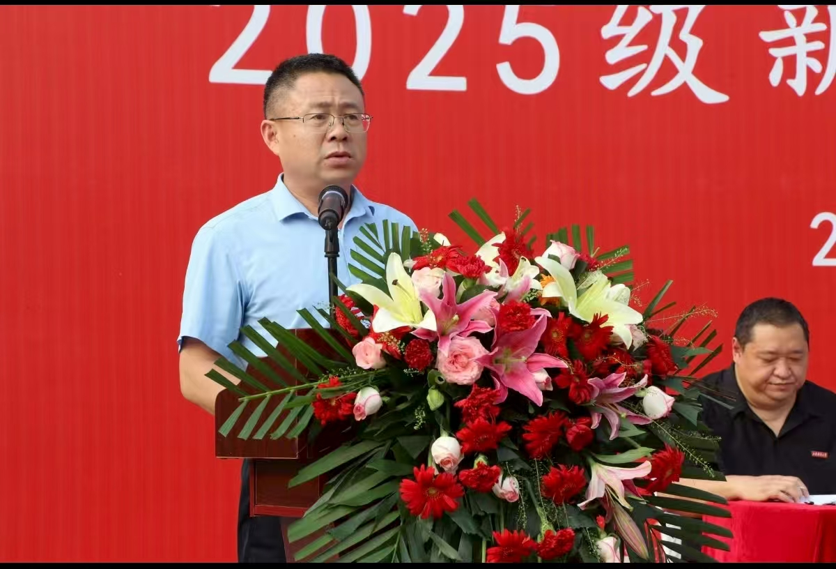 随后,田金方代表学院向全体新生致以热烈欢迎,并作题为“智能大数据时代如何为学”的主题讲话。他结合科技前沿与教育变革,详细阐述了大数据和人工智能在多个领域的应用前景,鼓励同学们主动适应时代发展,善用智能工具赋能学术探索,强化数据思维与算法能力,以扎实的专业素养服务国家战略,回应时代命题。他还特别叮嘱同学们注重身心健康,加强体育锻炼,做自己健康的“第一责任人”。