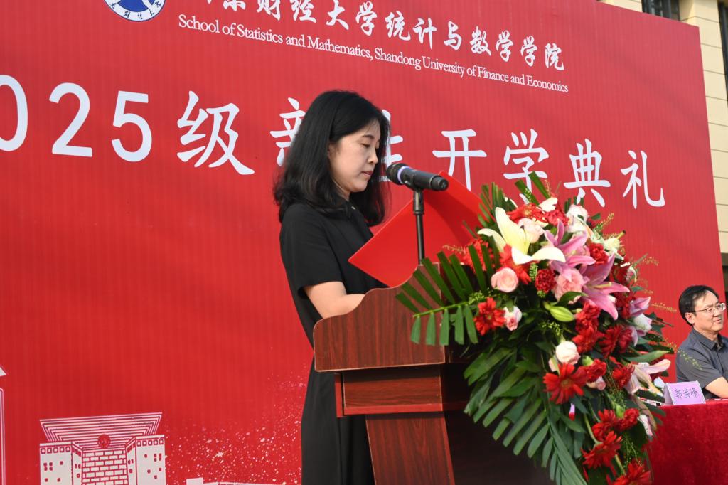 在校生代表2022级金融数学创新班李禾分享了三年来的成长感悟,鼓励新生从认真听课、积极参与实践等细微之处做起,逐步明确方向;勇于迎接挑战,在竞赛、协作与突破中锤炼能力;珍惜学院互助共进的集体氛围,主动融入、共同成长。