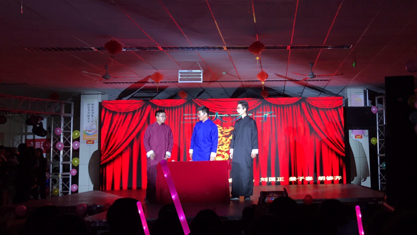 随后,在晚会第三篇章“梦芳华之日”中,由成人网 17级应用数学一班带来的和唱《和你一样》,用“一样的逐梦前行”的期望,带所有同学们重回高三那段艰难、拼搏的时光,重温风雨过后见彩虹的那份感动。在这之后,满富深情的吉他奏唱《车站》,风趣幽默的相声、小品——《三大才子》、《镖师》无不展现着同学们的多才多艺,向外界展现着财大人的独特魅力。最终在全体大二代班嘹亮的合唱声中,“‘数’风流人物,还看‘金’朝”迎新晚会圆满落幕。