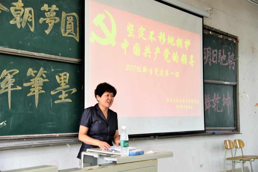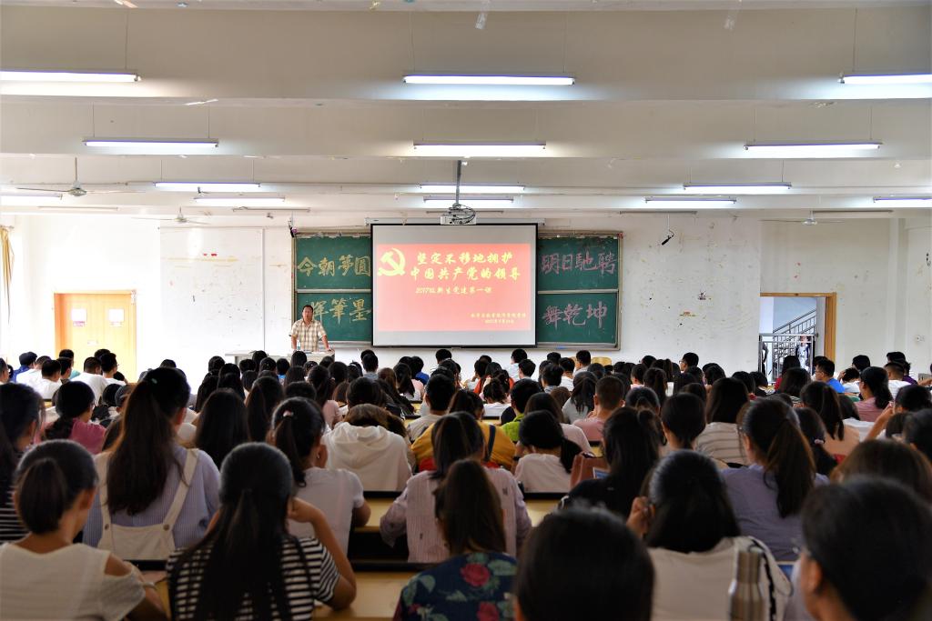 2017年9月14日上午,成人网 在敏行楼B5201为2017级新生举办了名为“坚定不移地拥护中国共产党的领导——2017级新生党建教育第一课”的党建专题教育讲座。学院党委书记王建香、党委秘书张亚萌分别为新生进行党课教育。讲座由张亚萌老师主持,2017级全体新生参加。