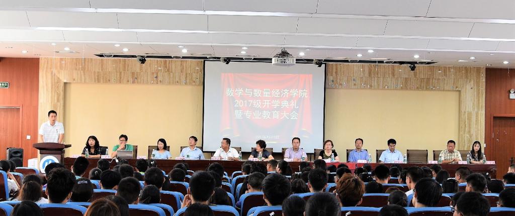 2017年9月13日上午9:00,成人网 在圣井校区敏行楼报告厅召开2017级新生开学典礼暨专业教育大会。成人网 院长安起光,党委书记王建香,副院长刘贵基、郝秀梅、刘太琳,党委副书记赵连幸,应用数学系主任孟宪萌,金融数学系副主任郭洪峰,教师代表苏园,团委书记王昊天,就业办主任张亚萌,辅导员燕文静、王京姝出席典礼,典礼由刘贵基老师主持,2017级全体新生和部分2016级学生代表参加。
