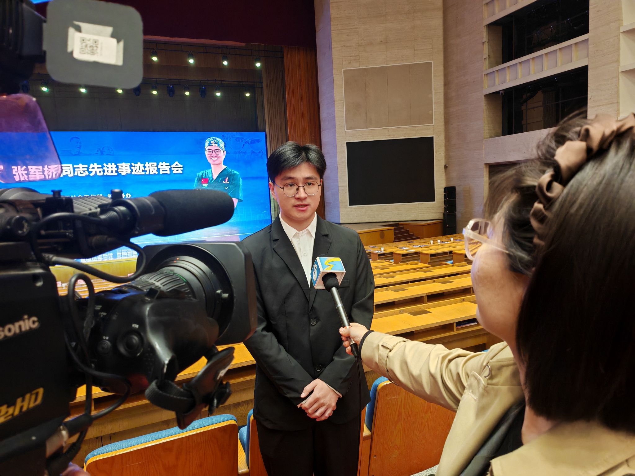 报告会后,学生代表接受媒体采访,畅谈学习体会。2022级金融数学3班冉维振说:“聆听张军桥同志先进事迹报告会,让我深受触动。作为学生党员,我的成长离不开国家、社会、学校老师的悉心培育与无私关爱。我将以张军桥同志为榜样,以所学服务社会、回馈人民。”2023级金融数学1班刘泽萱说:“报告会后,我的内心久久不能平静。作为一名青年学子,我被他把救人融入生命自觉、把奉献当作日常的精神深深感染。他让我明白,未来要成为什么样的人。”2023级数据科学与大数据技术2班韩庆武说:“绷不住,眼泪瞬间流下来了,张军桥同志是手术台上争分夺秒的医者,更是危急时刻舍己为人的勇者,他用生命书写了新时代医者与党员的最美答卷。我要把他当作人生中的灯塔,发扬他无私奉献的精神。”