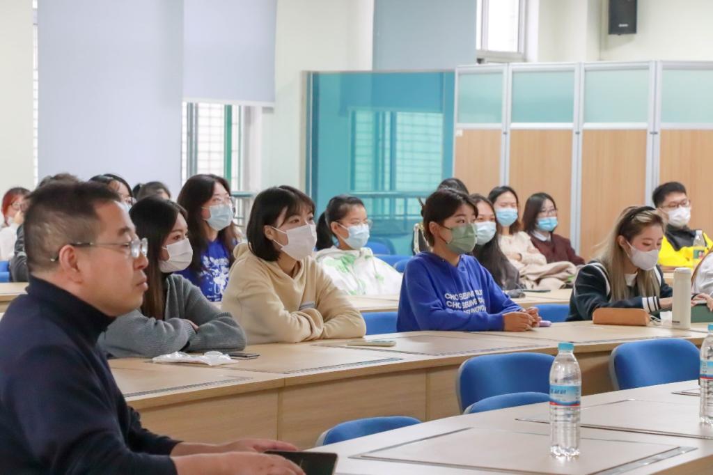 杨春晓处长介绍了我校国际交流与合作处的主要工作内容,并向同学们讲述了与我校建立交流合作关系的多所海外友好院校,鼓励大家做好学业规划,利用好学校各项国际教育资源。