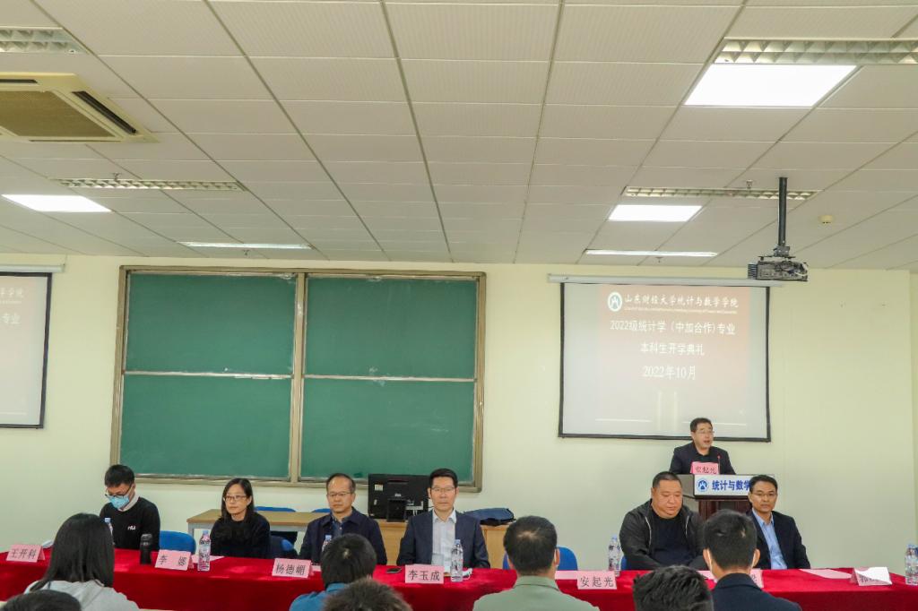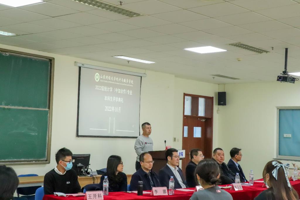 10月20日,成人网 于舜耕校区实验楼507举行2022级统计学(中加合作)专业开学典礼。成人网 党委书记李玉成,党委副书记、院长安起光,党委副书记杨德嵋、孙栋梁,副院长李娜、郭洪峰、王开科,教师代表戴洪帅,统计学(中加合作)专业辅导员杨雅琳出席。典礼由王开科副院长主持,22级所有新生参加。