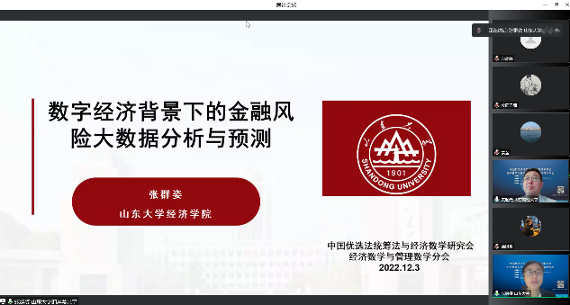 会上,中央财经大学中国互联网经济研究院副院长欧阳日辉教授作题为《数字经济的内涵特征和发展规律趋势》的大会报告,山东大学经济学院副院长张群姿教授作题为《数字经济背景下的金融风险大数据分析与预测》的大会报告。