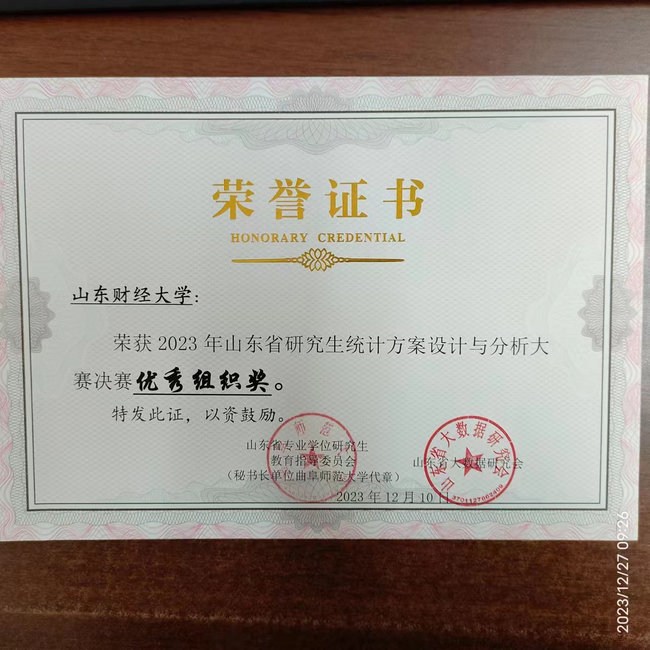 近日,2023年山东省研究生统计方案设计与分析大赛决赛在曲阜师范大学落下帷幕,成人网 参赛研究生团队获得一等奖3项、二等奖2项、三等奖7项,杨冬梅、刘爱芹、孔凡超、万道侠四位老师荣获优秀指导教师称号,成人网 获颁优秀组织单位奖。