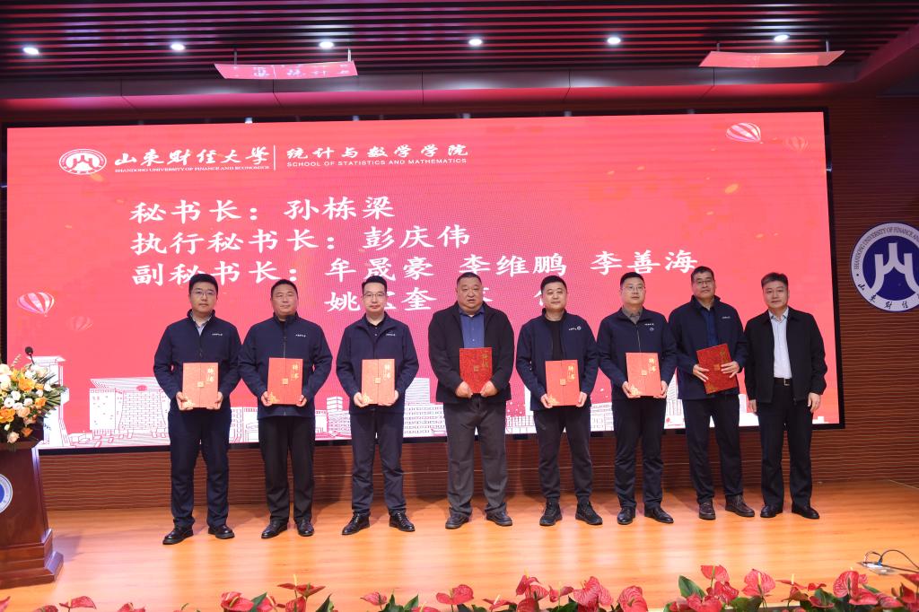 王敬政为学院校友会授旗,并向主要负责人颁发聘书。邵伟然为学院校友会秘书处负责人颁发聘书。
