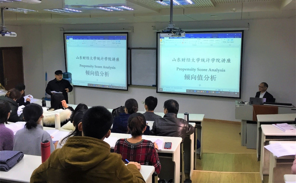 12月20日和21日,由研究生院和统计学院联合举办的专题课程《Propensity Score Analysis》(倾向值分析)在学景酒店MBA204教室圆满结束。课程由现任美国华盛顿圣路易斯大学Frank J. Bruno杰出教授,西安交通大学长江学者讲座教授,美国社会工作社会福利科学院院士郭申阳教授主讲。来自统计学院、会计学院、经济研究中心等院部的80余位老师和研究生聆听了两天的课程。开课前,校学科办主任马玉林教授、统计学院执行院长李国锋教授分别对郭教授来我校开设研究生短期课程表示欢迎与感谢。