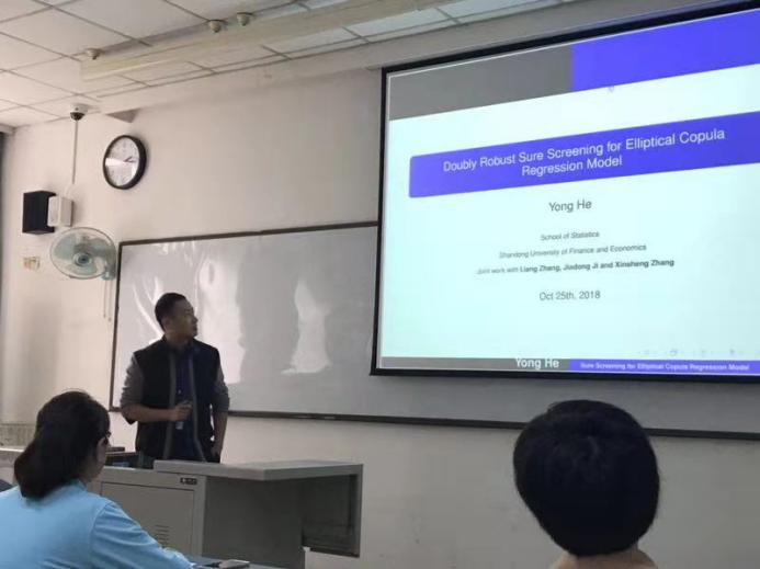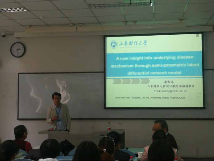 成人网 派出数理统计系的戴洪帅、何勇、季加东、于渊、孔令涛、郝涛等六位教师代表参加了此次会议。会议期间,戴洪帅老师做了题为“Stationary Distributions for Two-Dimensional Sticky Brownian Motion: Exact Tail Asymptotics and Extreme Value Distributions”的报告,何勇老师做了题为“Doubly Robust Sure Screening for Elliptical Copula Regression Model”的报告,季加东老师做了题为“A New Insight into Underlying Disease Mechanism Through Semi-parametric Latent Differential Network Model”的报告。
