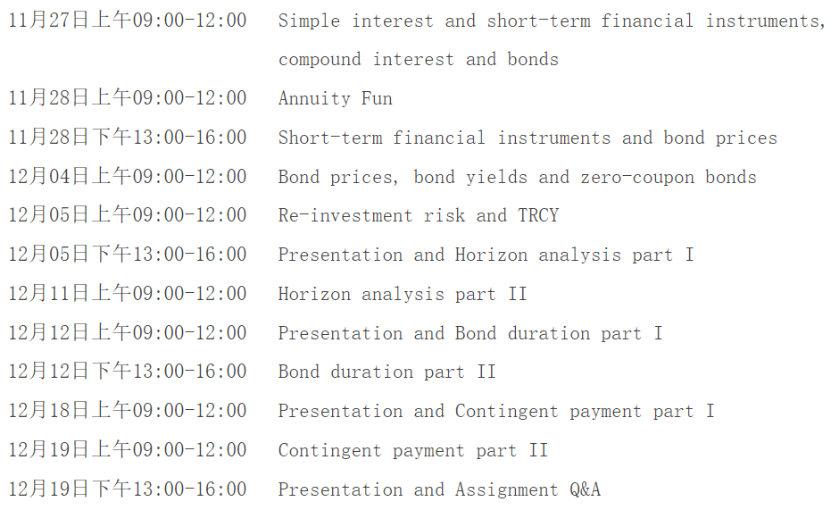11月27日至12月19日,在学校”2021年度外籍教师聘请计划”支持下,统计学院聘请澳大利亚麦考瑞大学的Georgina Ge博士,为成人网 研究生开展《金融计算与模型》(Financial Calculation and Methods)的授课工作,在燕山校区1号教学楼1708教室圆满完成。