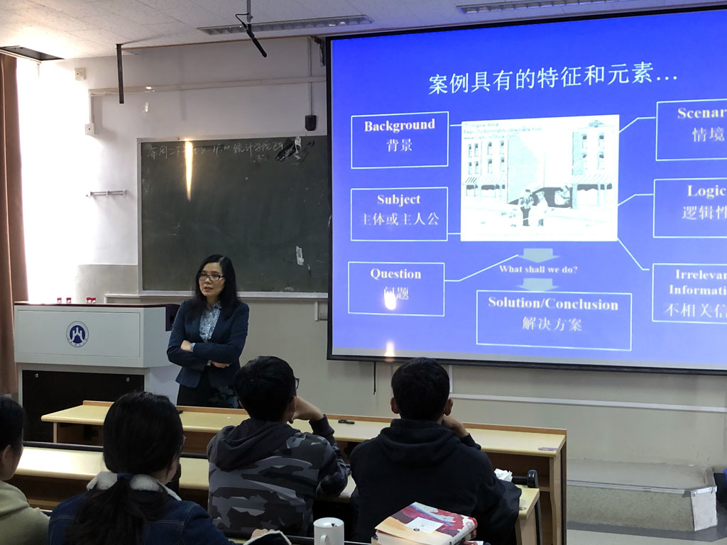 郑明教授首先由“什么是案例”问题引出主题,介绍了案例所具有的特征和要素;由浅入深,讲解了案例写作的核心模块和组成框架,并以强生制药研发为案例,向同学们强调案例研究中背景写作的重要性。随后,郑教授分别从案例类型、案例构思的三个步骤、案例构造的方法以及案例陈述方式等做进一步的讲解。报告中,郑教授提出同学们经常遇到的问题并给出了自己的建议,她提醒同学们在进行案例写作时要注意以问题为导向,以小见大。