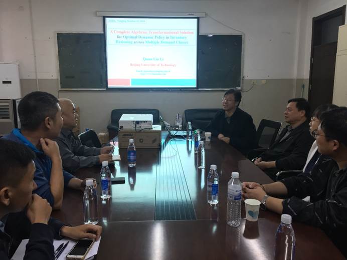 10月10日下午,应成人网 邀请,北京工业大学教授、博士生导师李泉林教授做客统计学院“百脉大讲坛”(第57讲)。李泉林教授作了以“A Complete Algebraic Solution for Optimal Dynamic Policy in Inventory Rationing across Multiple Demand Classes”为题的学术报告。统计学院部分老师及研究生们参加了报告。讲座由统计学院执行院长李国锋教授主持。