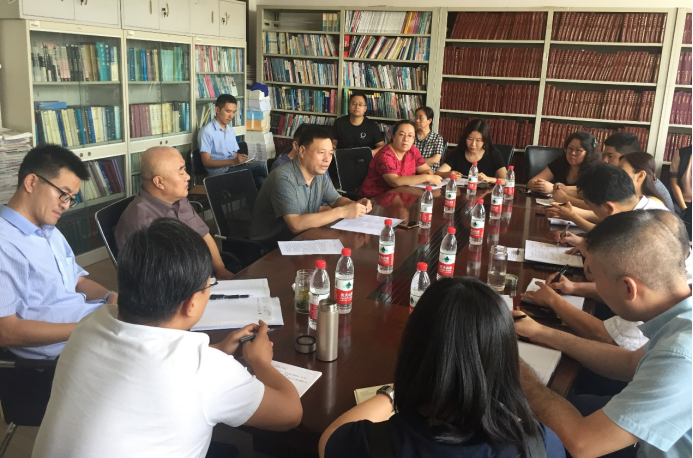 7月19日上午,济宁市任城区统计局局长周超、副局长张萌清、刘健等一行11人来成人网 进行考察交流。统计学院党委书记郑磊、执行院长李国锋、副院长田金方、裴海峰和部分教师参加了本次交流座谈会。