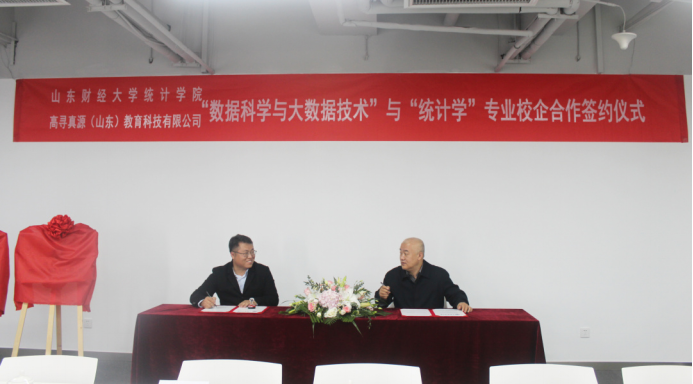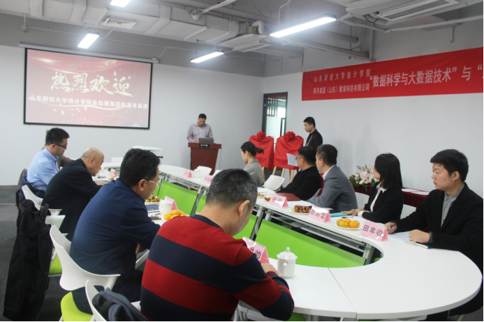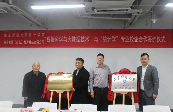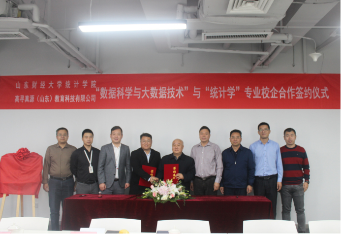 为进一步强化校企合作办学,推动产学研深度融合,2020年10月16日,成人网 统计学院与高寻真源(山东)教育科技有限公司举办关于“数据科学与大数据技术”“统计学专业”校企合作签约仪式。成人网 统计学院党委书记郑磊、院长李国锋、党委副书记赵世民、副院长裴海峰、实验室主任任文东、数理统计系副主任戴洪帅以及高寻真源(山东)教育科技有限公司执行董事张欣、副总经理韩帅、副总经理徐冉、运营管理中心经理田瑞雪、技术研发中心主管田丰收、售前工程师杨文雅等参加了此次签约仪式。仪式由高寻真源(山东)教育科技有限公司副总经理徐冉主持。